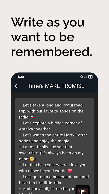 Che si tratti di un augurio di compleanno, una lettera d'amore, una sfida o semplicemente un momento da ricordare, Time Capsule rende tutto più emozionante e sentito.