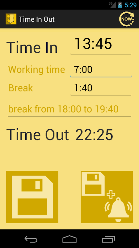 After setting the start time and specify the length of work time and break time application calculates the estimated time of completion of work.