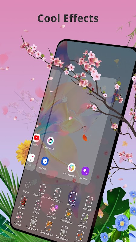 6. Time Launcher ha molti fantastici effetti animati, come l'effetto rosa, l'effetto cosmo, l'effetto girasole, ecc.