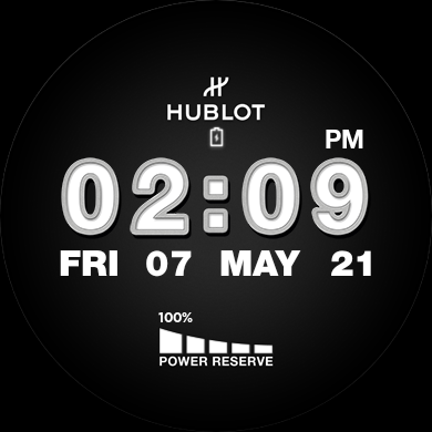 Watchface digitale che mostra l'ora, la data e la riserva di carica.