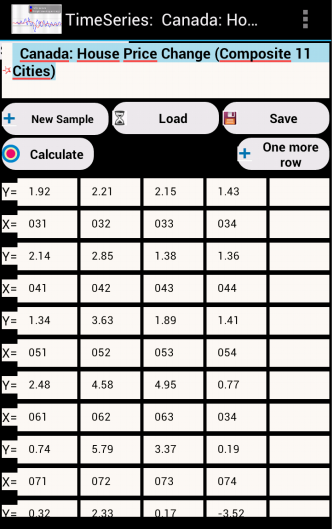 The application consists components processing samples of random variables of type time series. Applied five methods for prognosis and calculate the autocorrelation for disclosure of internal cycles. This application stores the data of only one sample. Enhanced application capable of storing data samples and many more features of this app is TimeSeriesResercher.