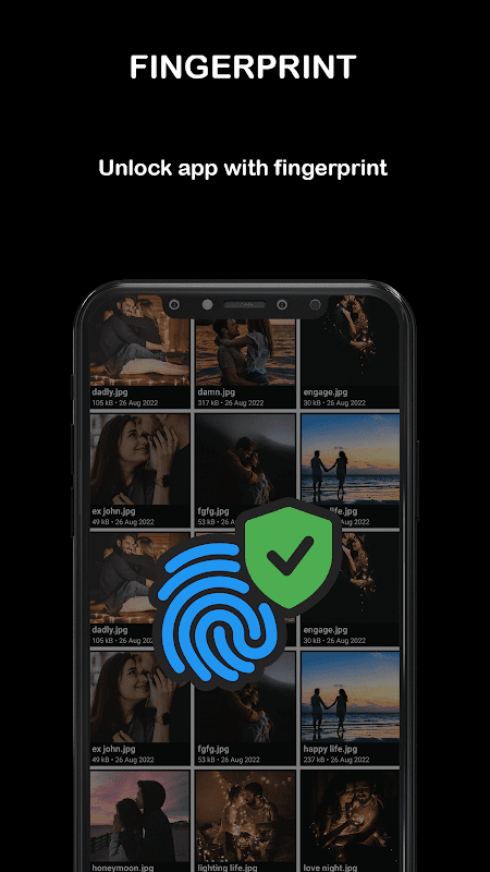 - Le tue immagini nascoste sono protette tramite il blocco dell'orologio o il blocco dell'impronta digitale.
