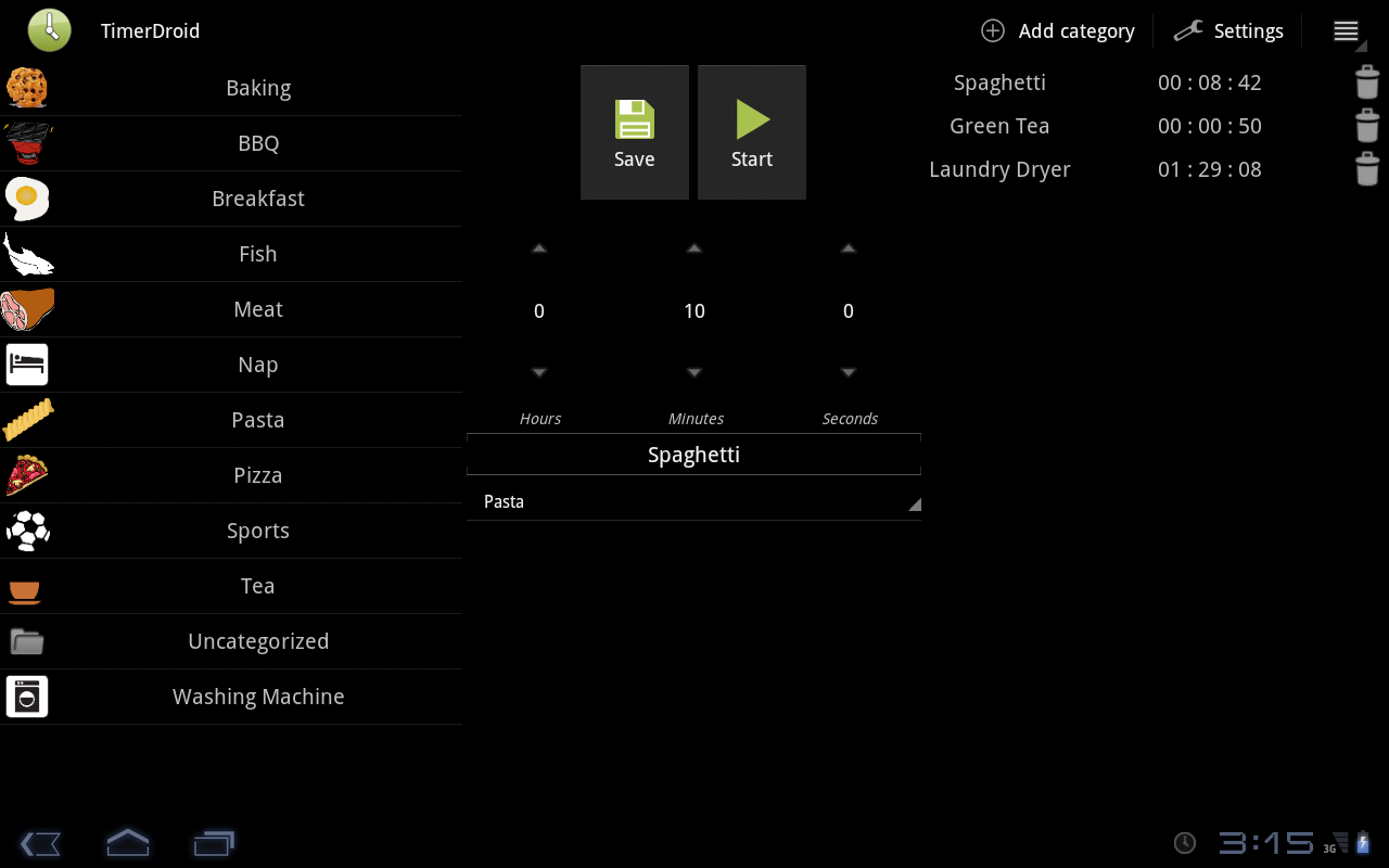 Start, manage and create your own timers. Perfect as kitchen timer. A widget is also available to start your timers.