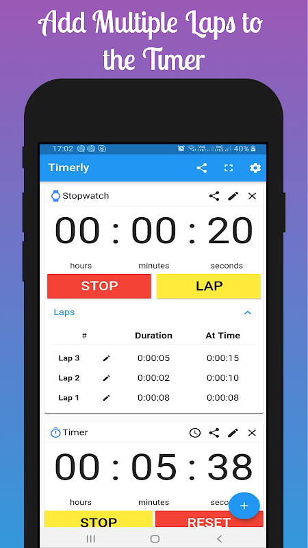 * Timer with Laps (Can add Laps from lock screen)