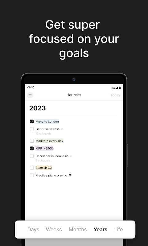 Timestripe è un pianificatore unico con intervalli di tempo flessibili. Pianificare i tuoi obiettivi giornalieri, settimanali, mensili, annuali e di vita ti consente di pensare in modo strategico, avere una visione chiara e concentrarti su cose che sono davvero importanti per te. Chiamiamo questo sistema di pianificazione Orizzonti.