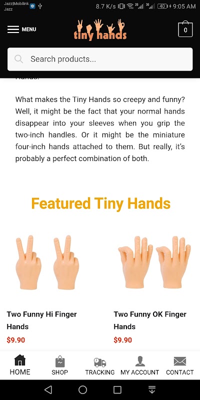 There’s something strangely funny about disproportionate body parts be they shrunken heads or clown feet. Now you can replace your normal, boring palms and fingers with funny little phalanges—Tiny Hands!