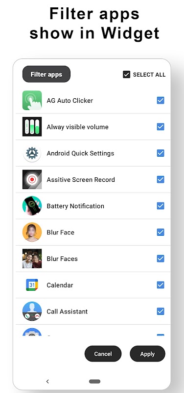 - Filtra le app desiderate da visualizzare nel widget della schermata iniziale.