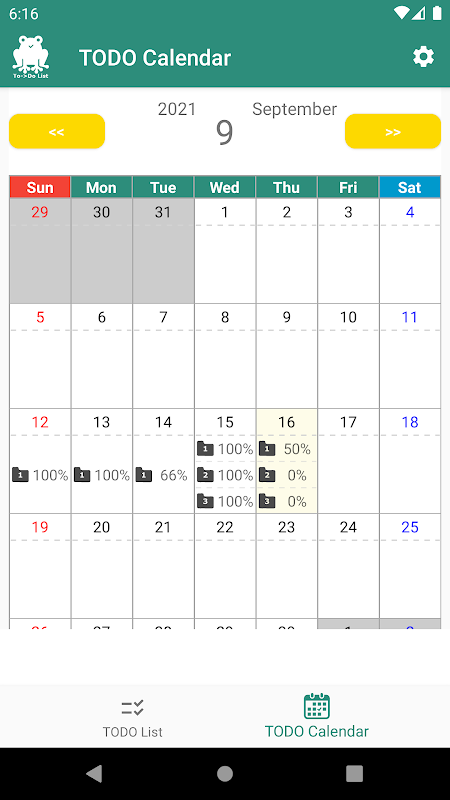 Il risultato TODO per un mese viene visualizzato sul calendario.