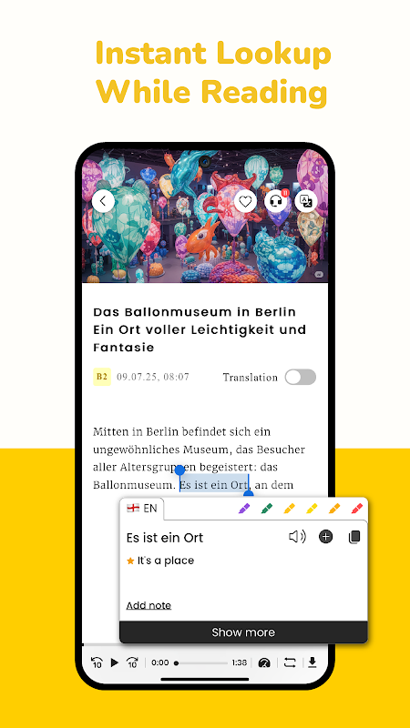 - Ricerca integrata con un solo tocco direttamente nella lettura, che ti aiuta a comprendere profondamente la semantica di parole e frasi quando necessario.