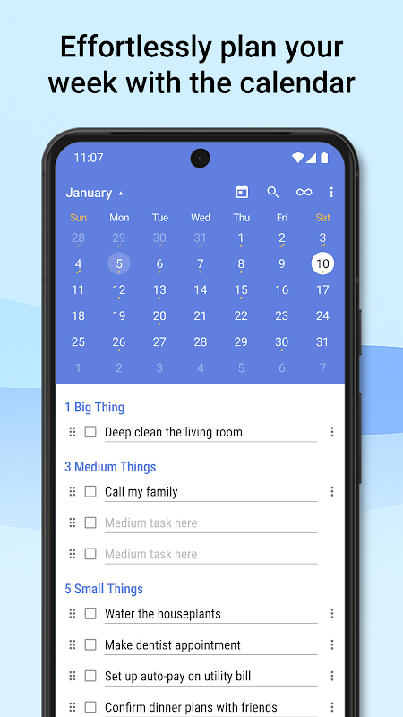 • visualizzazione del calendario per aggiungere attività a qualsiasi data e pianificare la tua settimana