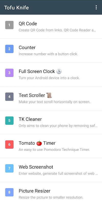 Tofu Knife è una raccolta di una serie di utility, ci sono 13 strumenti comuni.