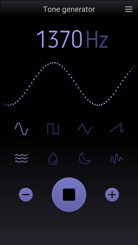 Questa app genera un tono costante (onda sinusoidale, quadra, triangolare o a dente di sega) nell'intervallo di frequenza udibile (da 20 Hz a 22 kHz), che può essere regolato con incrementi di 1 Hz o 10 Hz. Inoltre, è possibile riprodurre suoni speciali per rimuovere l'acqua dagli altoparlanti e aiutarti a rilassarti, meditare e dormire meglio. Ognuna di queste sezioni principali della nostra app si trova su una pagina separata e ulteriori informazioni su di esse verranno visualizzate quando tocchi il pulsante Informazioni. Per cos'altro può essere utilizzato questo generatore di suoni?