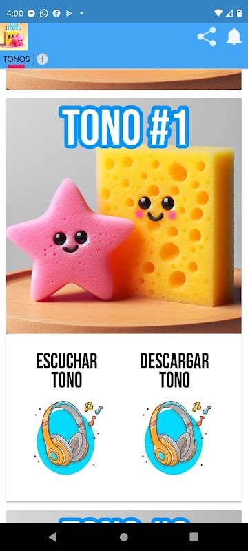 Immergiti nel divertente universo di Sponge con l'applicazione "Sponge Ringtones"! Dai un tocco unico alla tua esperienza di ascolto con un'ampia selezione di suonerie e notifiche ispirate ai personaggi più iconici di questa serie animata.