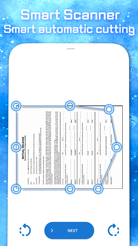 Riconosce automaticamente e riduce il bordo del documento o della pagina del libro da scansionare. È facilmente disponibile in qualsiasi momento, ovunque, e puoi ottenere risultati di scansione pulita da qualsiasi angolazione.