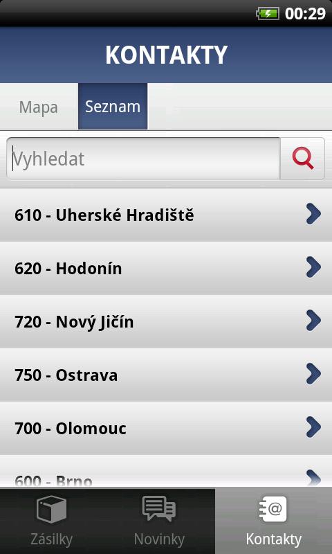 Tato volba umožňuje sledování již zadaných zásilek včetně jejich aktuálního stavu a přidání nové zásilky pro sledování.