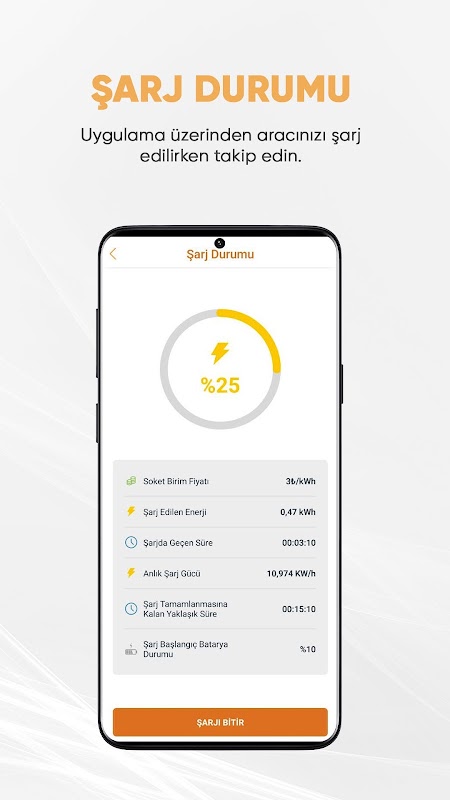 Puoi seguire il processo di ricarica del tuo veicolo attraverso l'applicazione.