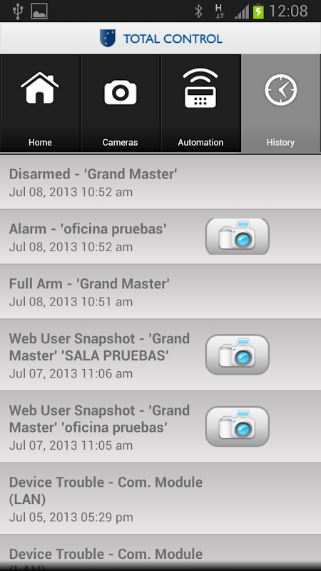 L'assoluto controllo può collegare o scollegare il vostro allarme, applicare immagini in tempo reale della vostra casa o in ufficio con totale privacy, controllare i dispositivi di automazione domestica (illuminazione, riscaldamento, aria condizionata ...) e visualizzare la cronologia delle vostre richieste.