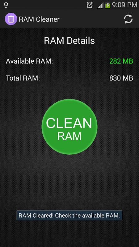 3) On that page, just click on the friendly green button which says "Clean RAM". It will clear your device's memory in a instant and will make your device faster again.