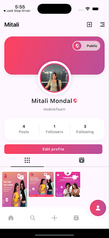Empowerment a ogni passo: TotalHER è più di un semplice social network; è un trampolino di lancio per donne di ogni estrazione sociale. Che tu sia una creatrice in erba che mostra la propria arte, un'imprenditrice che costruisce un marchio, una studentessa in cerca di ispirazione o una casalinga che condivide il suo percorso quotidiano, TotalHER è progettato per amplificare la tua voce e celebrare il tuo percorso unico. Offre strumenti e funzionalità che si rivolgono specificamente alle esigenze delle donne, promuovendo un ambiente in cui i loro successi vengono riconosciuti e le loro difficoltà vengono affrontate con empatia.