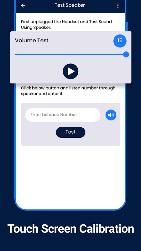 - Test degli altoparlanti utilizzando il suono e test degli altoparlanti utilizzando la riproduzione di numeri casuali e l'utente deve inserirli nella casella di testo per il test.