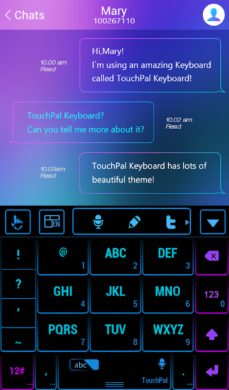 Libero TouchPal luce al neon il tema della tastiera per la tastiera Emoji TouchPal.