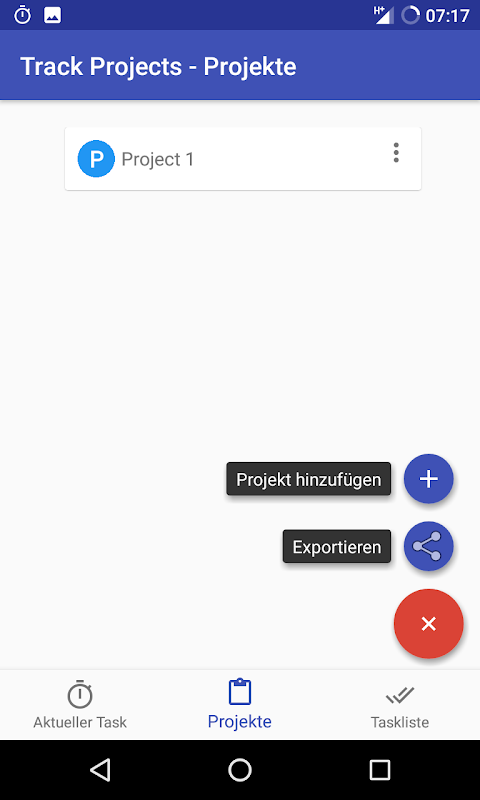 In der App kann man Projekte anlegen und zu jedem Projekt Tasks starten.
