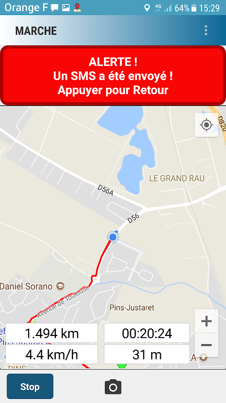 Si vous avez un problème (agression, malaise…) vous pouvez activer la fonction Alerte.