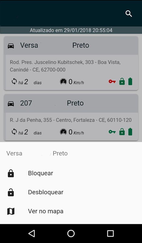 Conoscere le informazioni del veicolo come velocità, accensione o spegnimento, data e ora dell'ultima connessione al localizzatore.