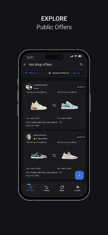 Tradeblock ti consente di scambiare scarpe da ginnastica con scarpe da ginnastica in una comunità di collezionisti.