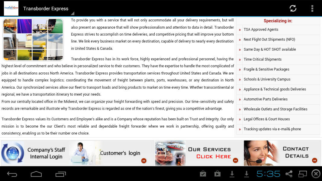 TRANSBORDER EXPRESS INC is a rapidly expanding freight forwarding company offering a wide range of transportation and distribution services at competitive prices. At Transborder Express Inc, our steadfast commitment is to provide our clients with the best delivery solution throughout the United States & Canada, we strive to provide reliable, fast, and affordable freight forwarding solutions built on trust and integrity, we value our clientele and their logistics needs by providing them superior and time-sensitive services. We are equipped to handle complex logistics; coordinating the movement of freight between plants, ports, warehouses, or any destination in North America and Canada. Also known as Freight Forwarders (IAC- Indirect Air Carriers), Freight Brokers, Cartage, Freight Transportation, Hot Shot Couriers, Couriers and messenger services.
