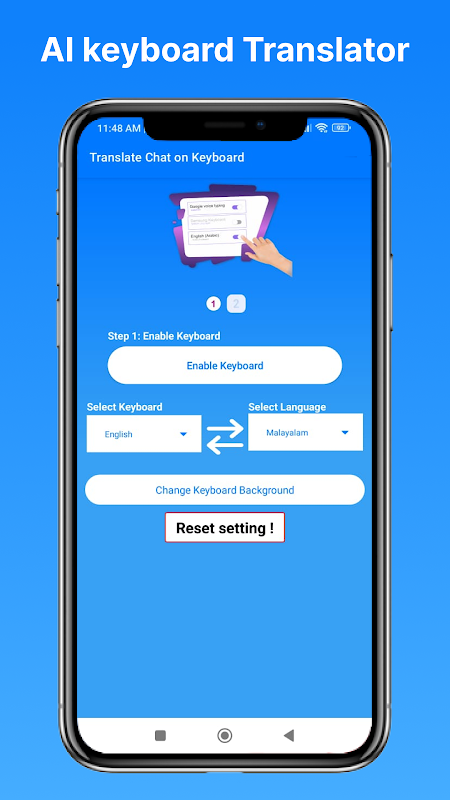 L'app per la traduzione dello schermo ha anche una tastiera per traduzioni in diverse lingue. Per prima cosa abilitato la tastiera per tradurre una chat in una lingua e postare in un'altra. Come? Seleziona la tastiera di una lingua per tradurre un testo in lingua madre in oltre 100 lingue. Cambia lo sfondo della tastiera con lo splendido tema che preferisci. In questa app di traduzione sono disponibili funzionalità di traduzione di testo, voce e immagini in tempo reale.