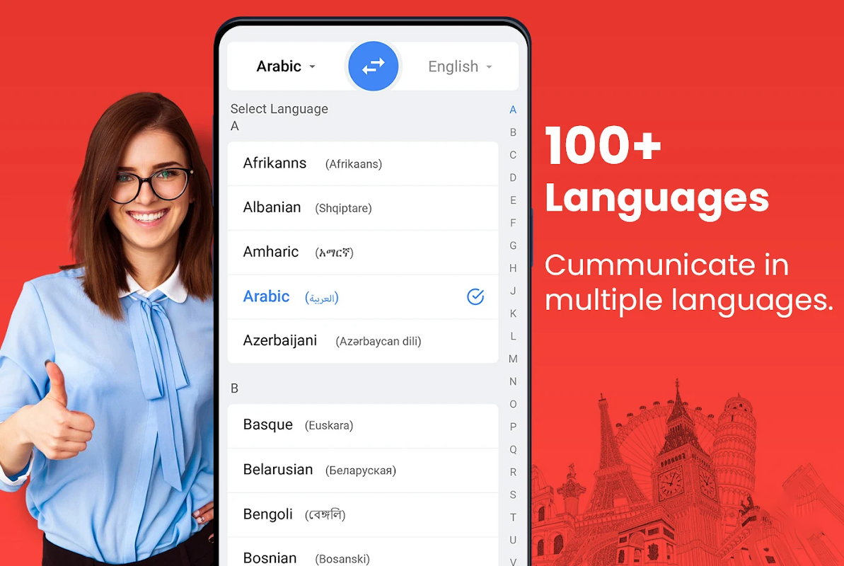 L'app di traduzione AI del traduttore vocale ti aiuta a navigare facilmente in nuovi luoghi. Con la traduzione in tutte le lingue in tempo reale, puoi esplorare destinazioni e connetterti con persone in tutto il mondo senza barriere linguistiche.