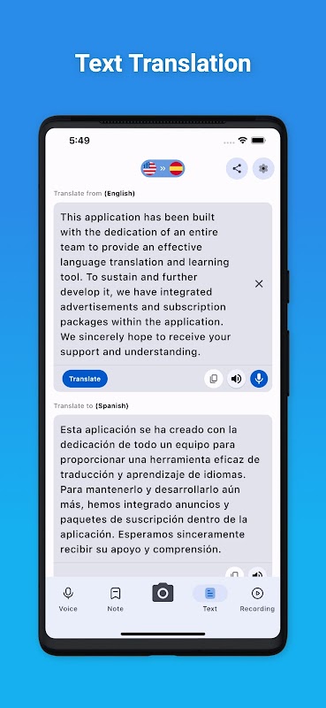 This Language App is the leading Translator, packed with outstanding features like accurate voice translator, text translation in 48+ languages, and a highly useful camera translation feature. It also supports to translate photo, learn Spanish or any language with Camera Translator, Notes and Recorder.