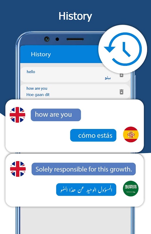 Tutta la traduzione del traduttore supporta più di 80 lingue, senza barriere comunicative. Puoi tradurre facilmente il testo delle foto scansionando il testo con il traduttore di fotocamere, quindi scegli la lingua per il testo di traduzione, il traduttore di foto ti fornirà la migliore traduzione accurata del testo. Se vuoi tradurre la voce, il nostro traduttore Android per la voce è sempre il migliore come traduttore di suoni vocali.