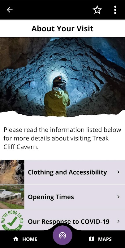 Un'app per accompagnare la tua visita a Treak Cliff Cavern a Castleton nel Peak District. Include commenti audio che ti aiuteranno nel tuo tour autoguidato del sistema di grotte. Treak Cliff Cavern è famosa in tutto il mondo per i suoi unici e grandi depositi di pietra Blue John e ospita alcune delle più belle formazioni di grotte trovate nel Regno Unito.