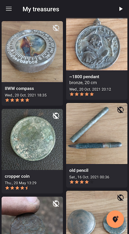 Treasure Logger è destinato a coloro che utilizzano metal detector, sia utenti esperti che principianti. Ti consente di registrare i tuoi rilevamenti sulla mappa in modo completamente privato, inclusi un'immagine, un nome, una descrizione e un punteggio per determinare l'importanza del tesoro. Ti permette inoltre di tracciare il percorso che stai percorrendo, per sapere nel dettaglio dove sei passato con il metal detector, verificare le zone che ti mancano e quali sono state le zone con maggiori possibilità di trovare nuovi tesori. Tutti i dati sono archiviati privatamente e crittografati, nessun altro sarà in grado di vedere i tuoi risultati o percorsi.
