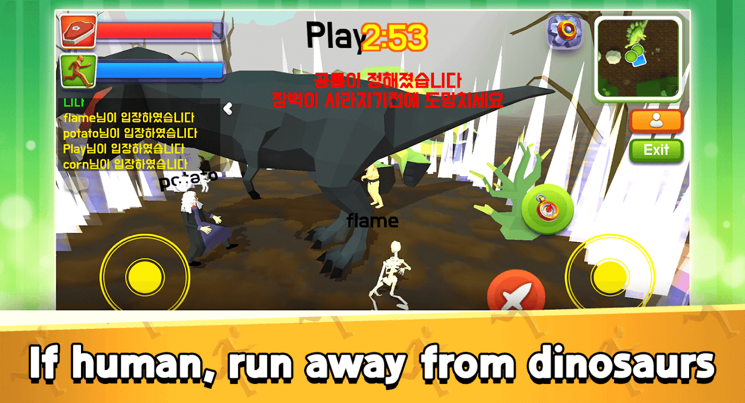 - The rest of the human players must run away from the dinosaur.