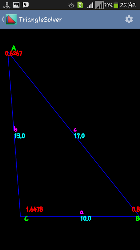 Semplice applicazione per risolvere per i parametri (lati o angoli) per triangle.Given tre parametri (lati o angoli) manca l'applicazione calcola automaticamente i parametri restanti.