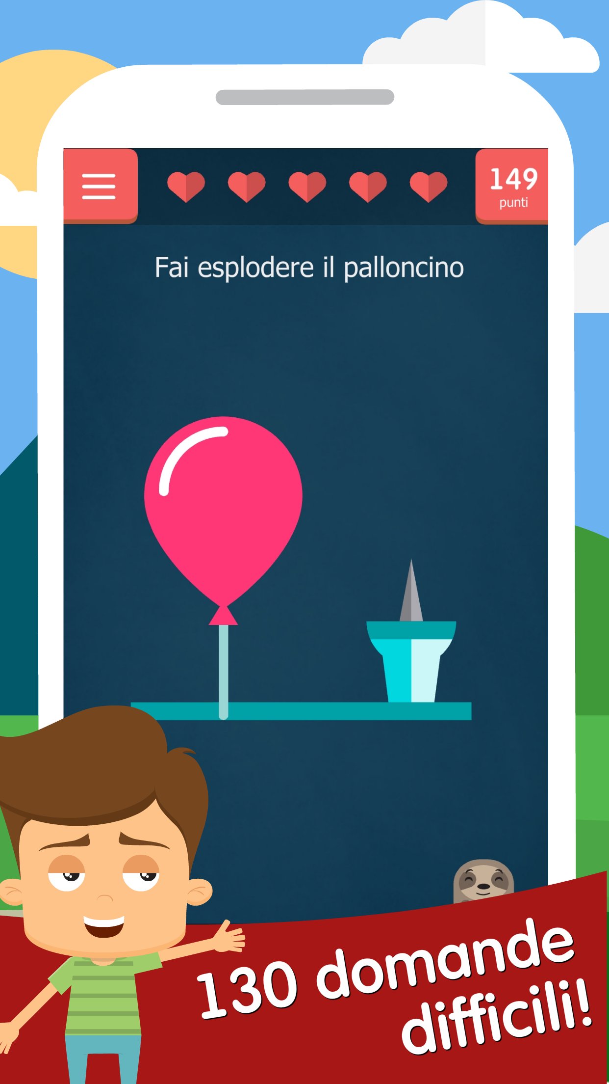 Ci sono 131 indovinelli creativi e complicati. Se vuoi risolverli devi mostrare tutta la tua capacità di osservazione e logica. Questo gioco è il più interessante, creativo e il più idiota, pieno di compiti difficili e non ordinari! Si tratta di insoliti test IQ, scuoti, gira e bacia il tuo telefono. Usa tutte le opportunità del tuo telefono per superare tutti i complicati indovinelli. Devi essere attento e composto per determinare dove è la logica, perché ci sono molti compiti difficili. E ricorda, la risposta al test può essere nascosta sulla superficie. Inoltre puoi giocare mentre sei offline. Puoi giocare senza internet!