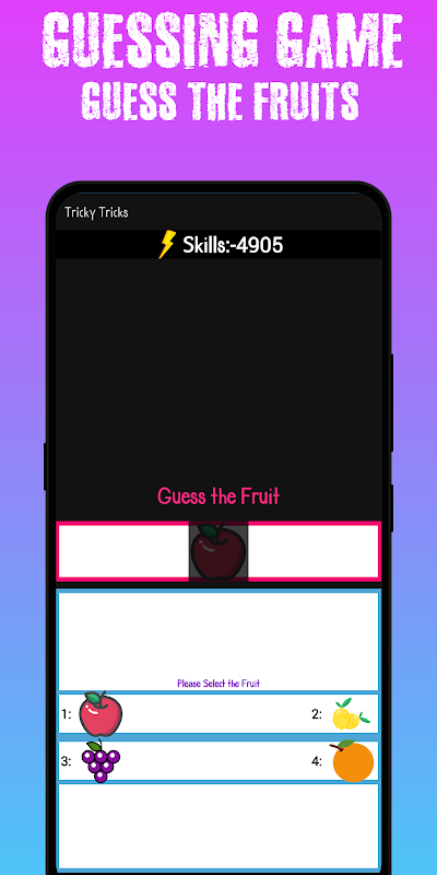 2:- Guess Game, Guess the Fruits and show your Skills.