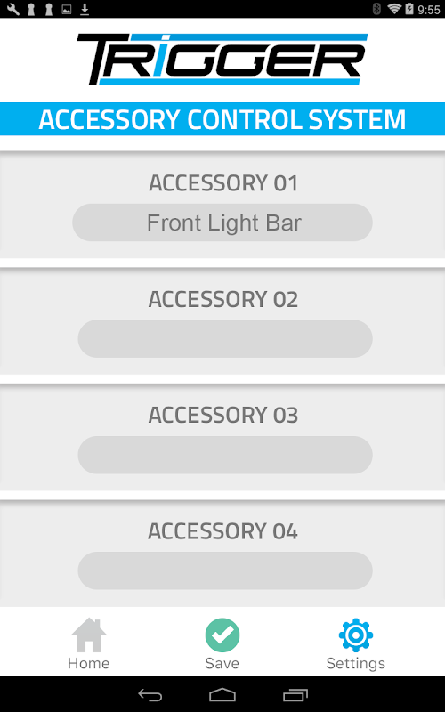 5. Toccare l'icona "Impostazioni" per personalizzare i nomi degli accessori collegati a Trigger. Tocca "Salva" per salvare i nomi personalizzati.