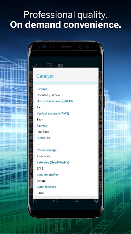 Nota: questa app è utilizzabile con il ricevitore Trimble Catalyst GNSS e richiede un'antenna Catalyst compatibile. Per utilizzare Trimble Catalyst è necessaria un'app abilitata per Trimble Catalyst o l'app Trimble Mobile Manager sul telefono.