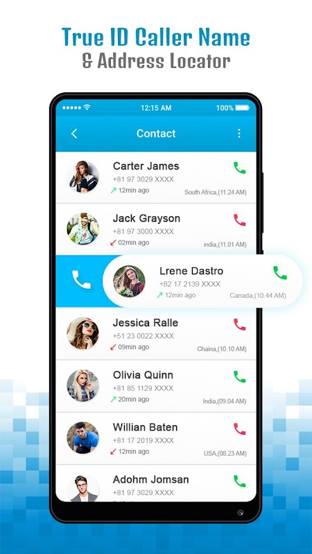 True ID Caller Name Location & Call Block is the only app that displays Caller Location of the caller and All callers on Call Log Screen with custom made call log screen. You can easily manage your white pages and blacklist.