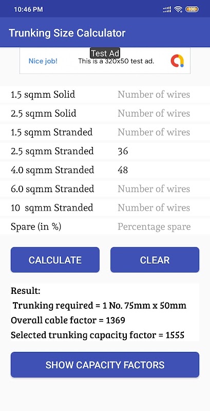 Questa applicazione calcola la dimensione di trunking richiesta per un dato numero di fili.