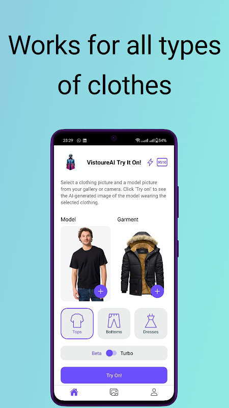 Try It On è un'app di prova virtuale all'avanguardia basata sull'intelligenza artificiale progettata per rivoluzionare l'esperienza di acquisto di moda online. Con Try It On, gli utenti possono visualizzare la vestibilità dei diversi vestiti e guardarli in tempo reale, contribuendo a eliminare l'incertezza e aumentando la fiducia nelle loro decisioni di acquisto.