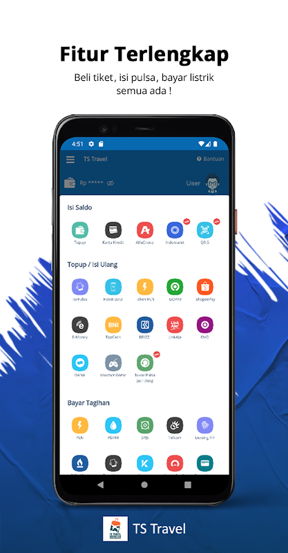 - Pagare fatture PPOB (PLN mensile, token PLN, gruppo TELKOM, PGN, BPJS Health, PDAM, leasing, carta postpagata, voucher di gioco, TV via cavo)