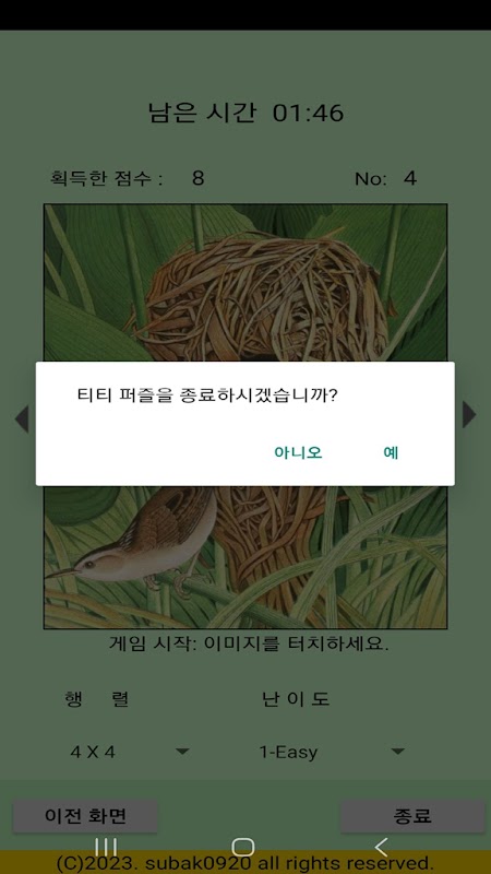 It is a puzzle game where you touch two places to exchange pictures and match them.