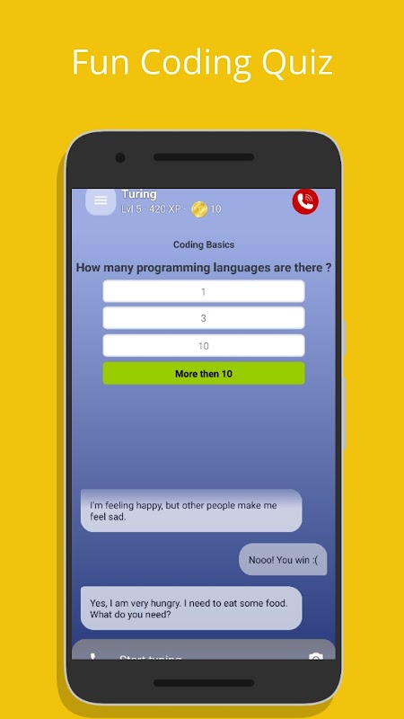 Turing brings you an easy and fun way to learn coding, all along with your AI friend.