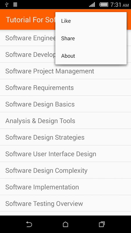 Orange Tutorials brings for you handy and best Tutorial For Software Engineering. Tutorial For Software Engineering App is user friendly, light weight, an easy-to-use for learning. The lessons in App are easy and effective. The app has following features: