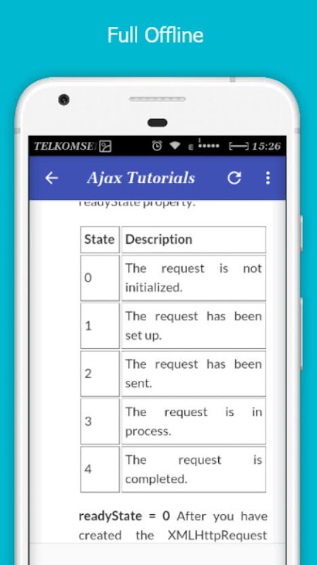 Tutorials for Ajax Offline is a complete application for those of you who want to learn Ajax easily and for free. There are dozens and even hundreds of Ajax tutorials starting to base for beginners to advanced. All these tutorials you can read offline without the need to connect to the internet or mobile data.